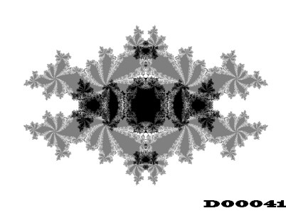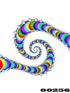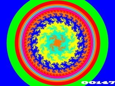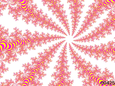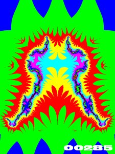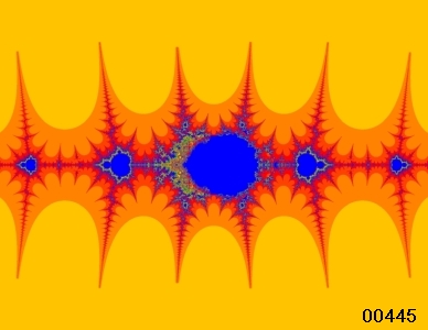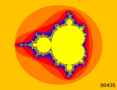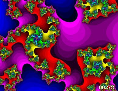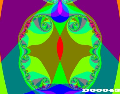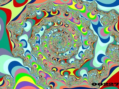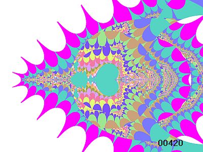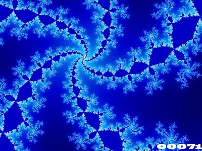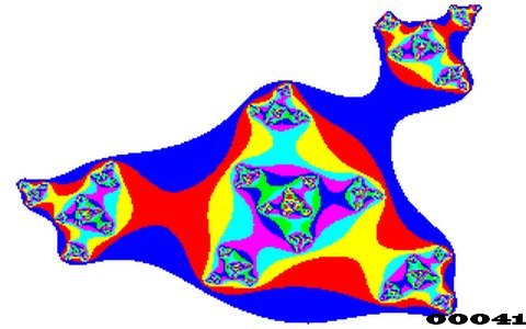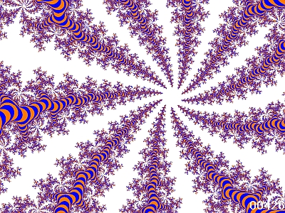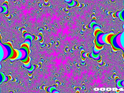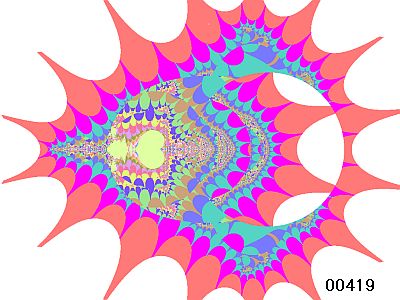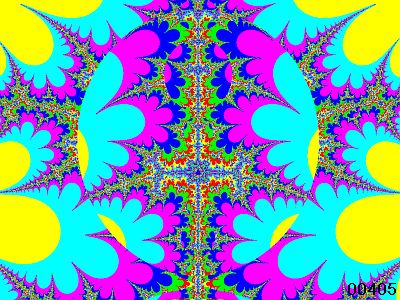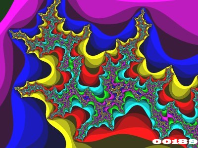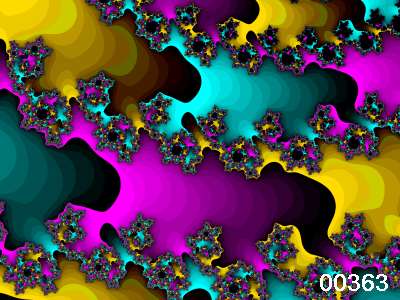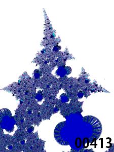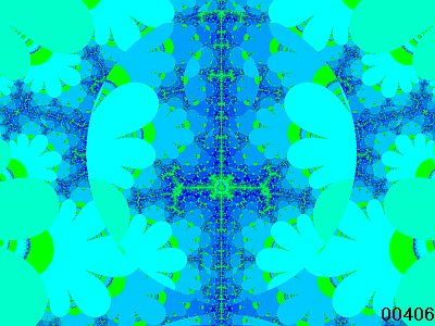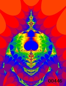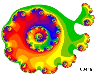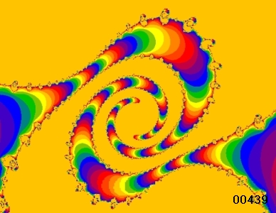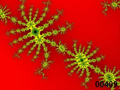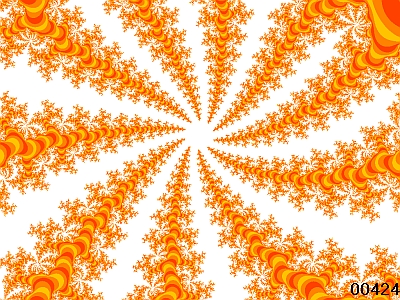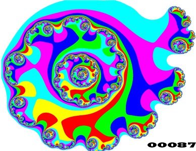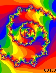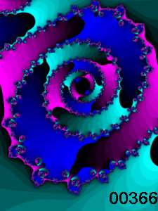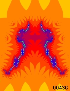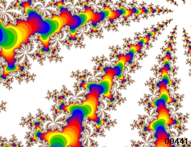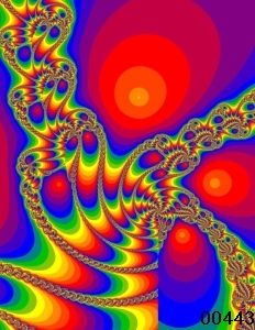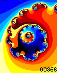 Fractals are pictures generated by mathematical equations using an iterative plotting process. Some Fractals are exhibited in the complex plane and others are in the usual two dimensional plane. Fractals often exhibit self-similarity, which means, if you magnify a small piece of the picture you will find a picture looking like the original. If the resolution was high enough you could keep repeating this, forever, and still see a picture similar to the original. The small pictures you see below are catalog pictures and if you click on a picture you will see a larger copy of the Fractal which you can right click on and copy. (They are 8.5X11 inches but only at web resolution 72 dots/inch. If you need 600 dots/inch just e-mail me and I will send it to you.)