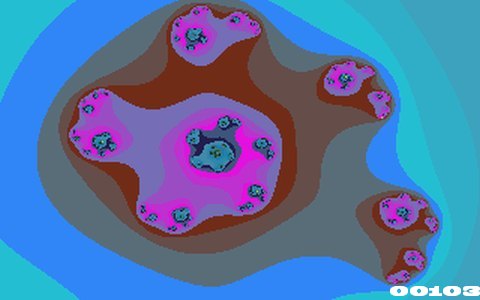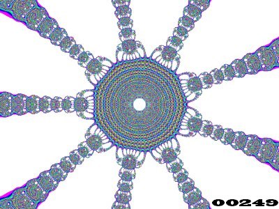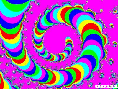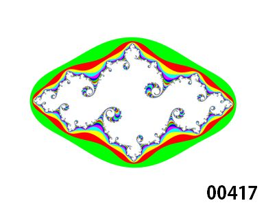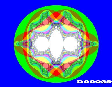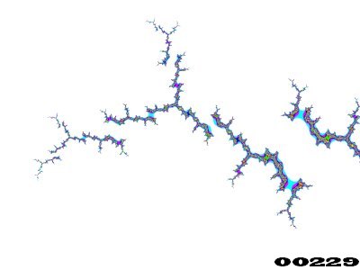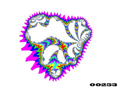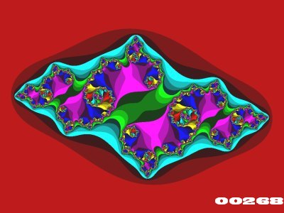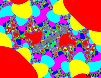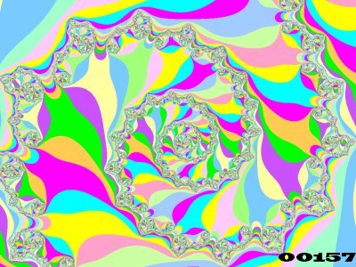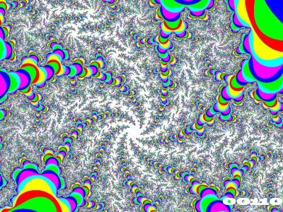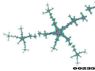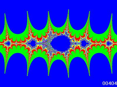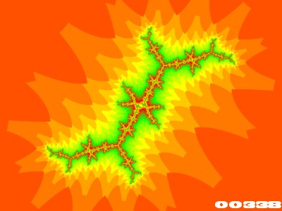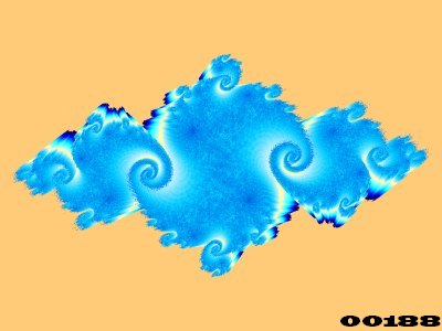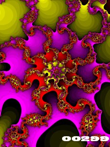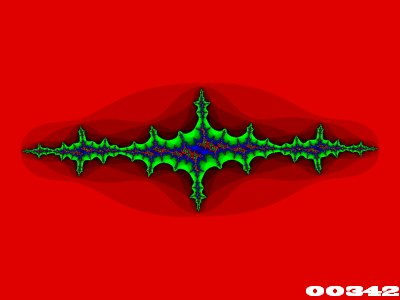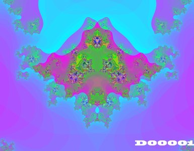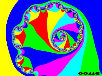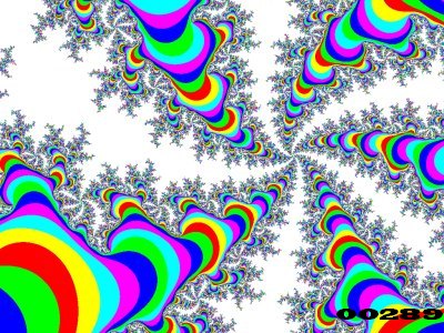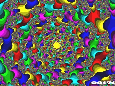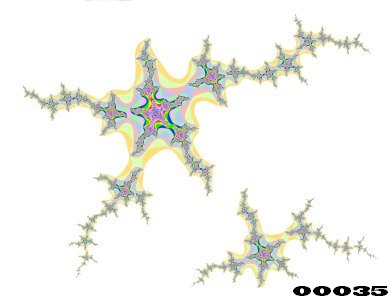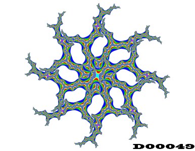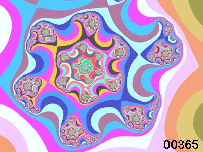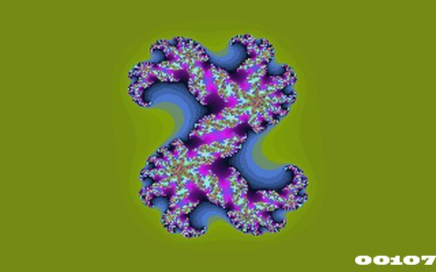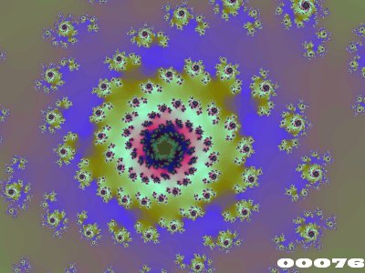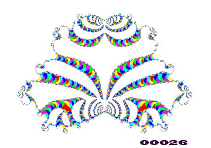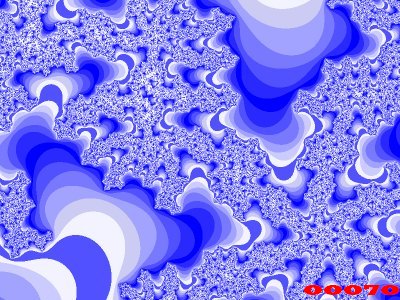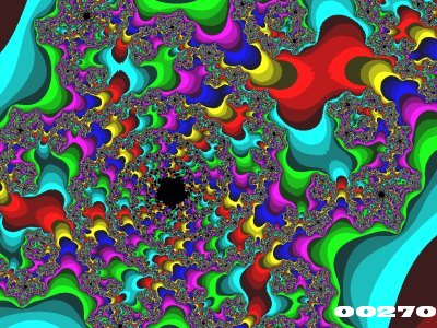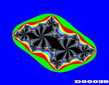 Fractals are pictures generated by mathematical equations using an iterative plotting process. Some Fractals are exhibited in the complex plane and others are in the usual two dimensional plane. Fractals often exhibit self-similarity, which means, if you magnify a small piece of the picture you will find a picture looking like the original. If the resolution was high enough you could keep repeating this, forever, and still see a picture similar to the original. The small pictures you see below are catalog pictures and if you click on a picture you will see a larger copy of the Fractal which you can right click on and copy. (They are 8.5X11 inches but only at web resolution 72 dots/inch. If you need 600 dots/inch just e-mail me and I will send it to you.)