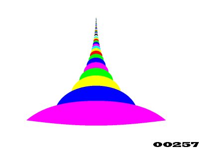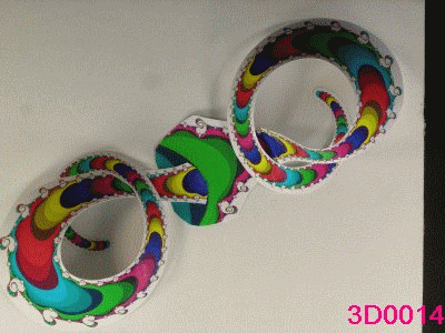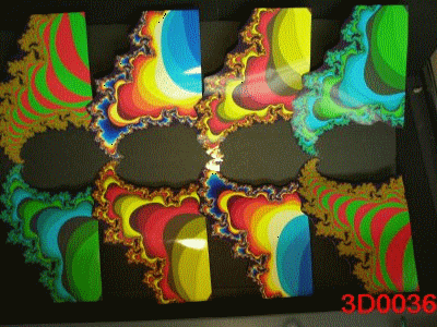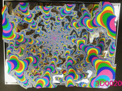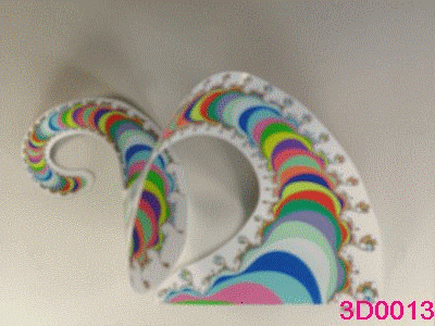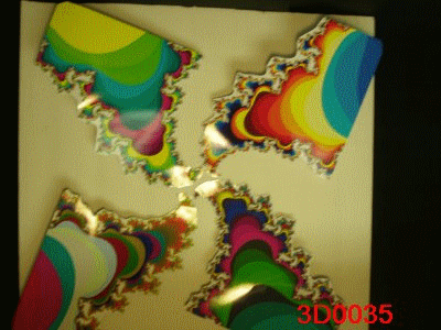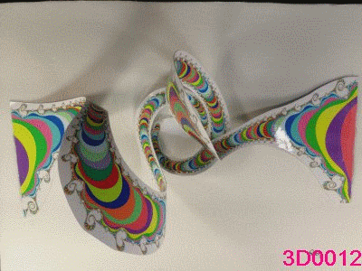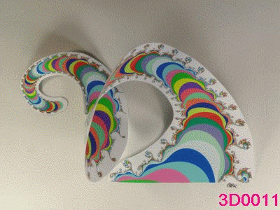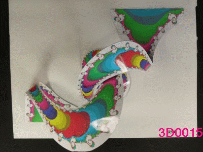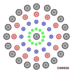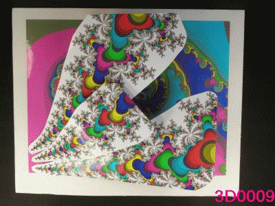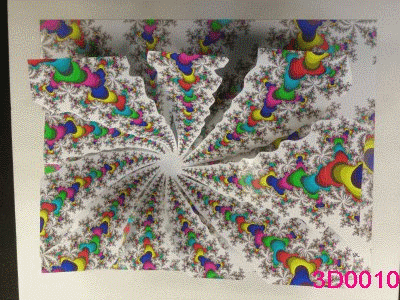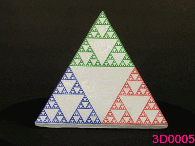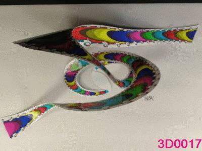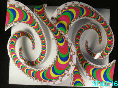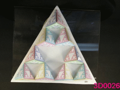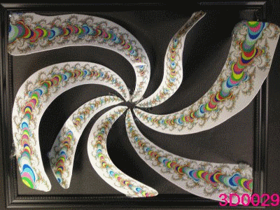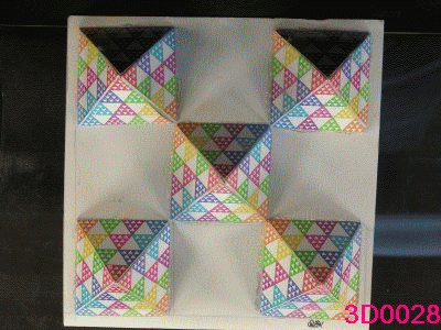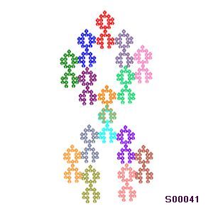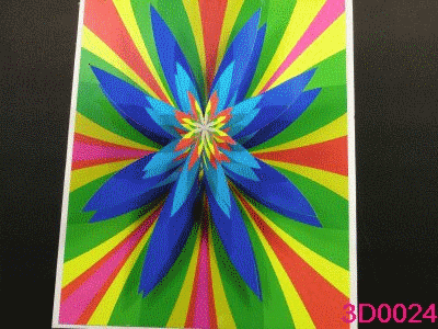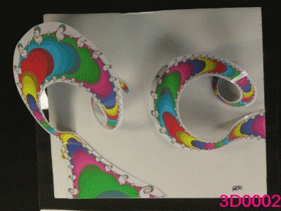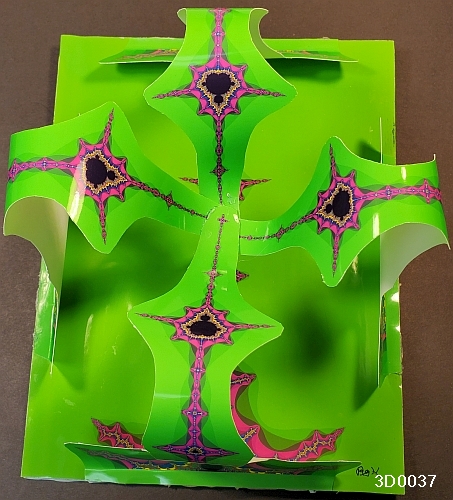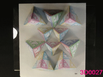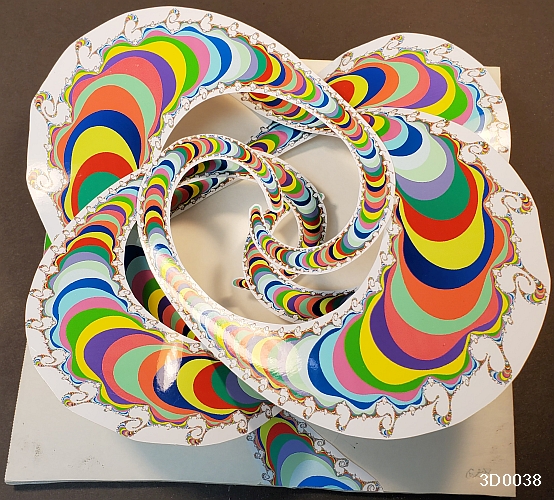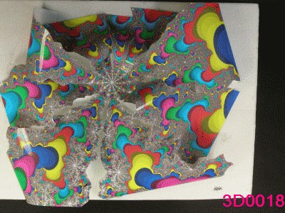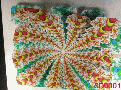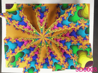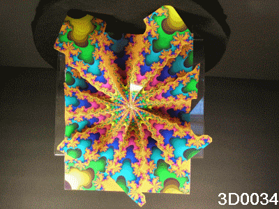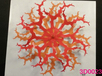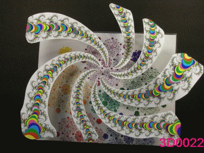 A One unit 3D flower fractal looks like figure A. It can be hung on a pin or placed on a table and rotated. Since the colors are hard to distinguish, only one of the layers are shown here.