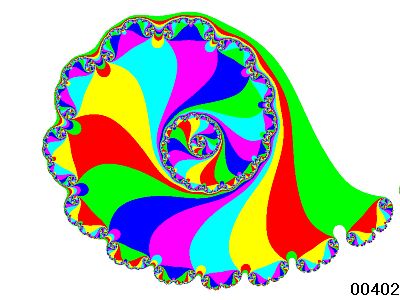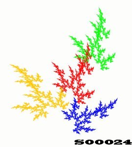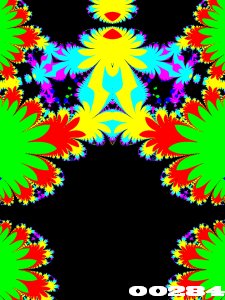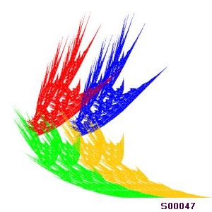 These fractals are obtained by using a number of pairs (at most 100) of affine [they don’t send thing to infinity] linear equations. Each pair of equations takes a point and obtains another point putting a dot at that point in the color assigned to the pair of equations. A starting point, usually (0,0), begins the plotting system, which could go on forever, but is usually stopped after 10 million points are plotted. Most of these plots exhibit clear self-similarity, while in others it is not so clear. I have always believed that Iterative Function Systems were the mathematics of genetics.
